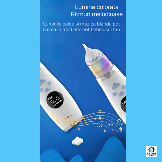 Aspirator nazal electric pentru copii si bebelusi ATOM DEALS®️, 5 viteze, auto-curatare, IPX6 rezistent la apa, acumulator 600mAh, 3 capete