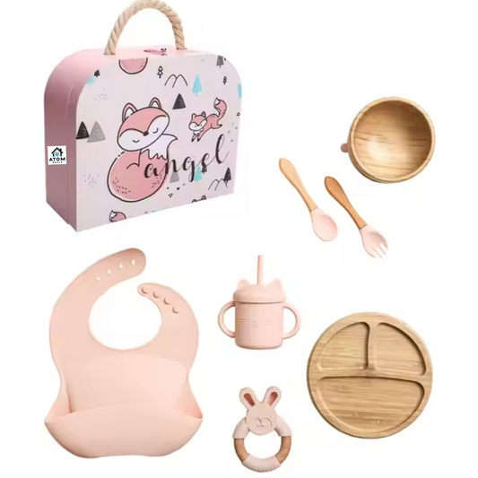 Set masă bebeluși ATOM DEALS®️ din bambus, cu baveta silicon