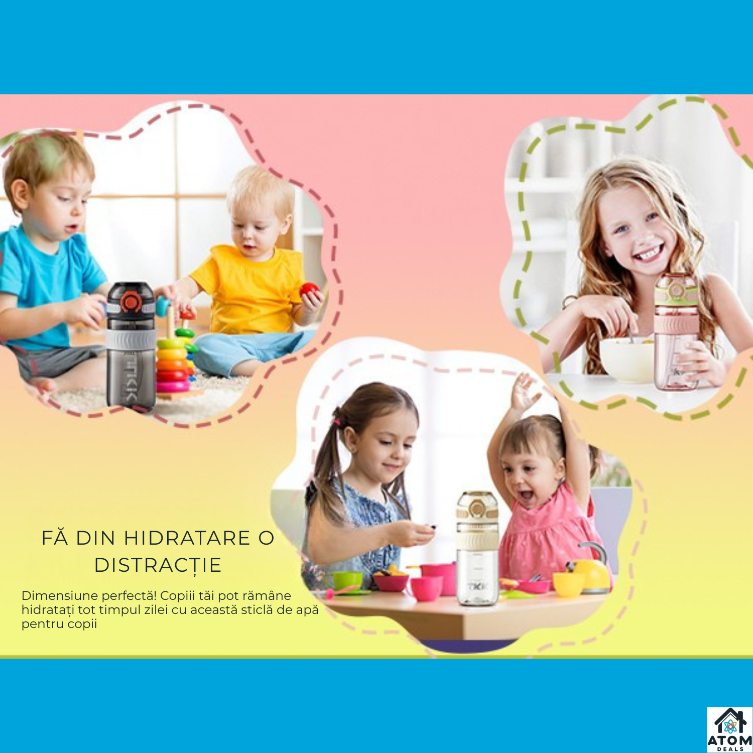 Alege sticla ATOM DEALS® Tritan 550 ml pentru o hidratare practică, elegantă și sigură — adaug-o în coș acum și fii gata să oferi clienților un produs de calitate superioară!