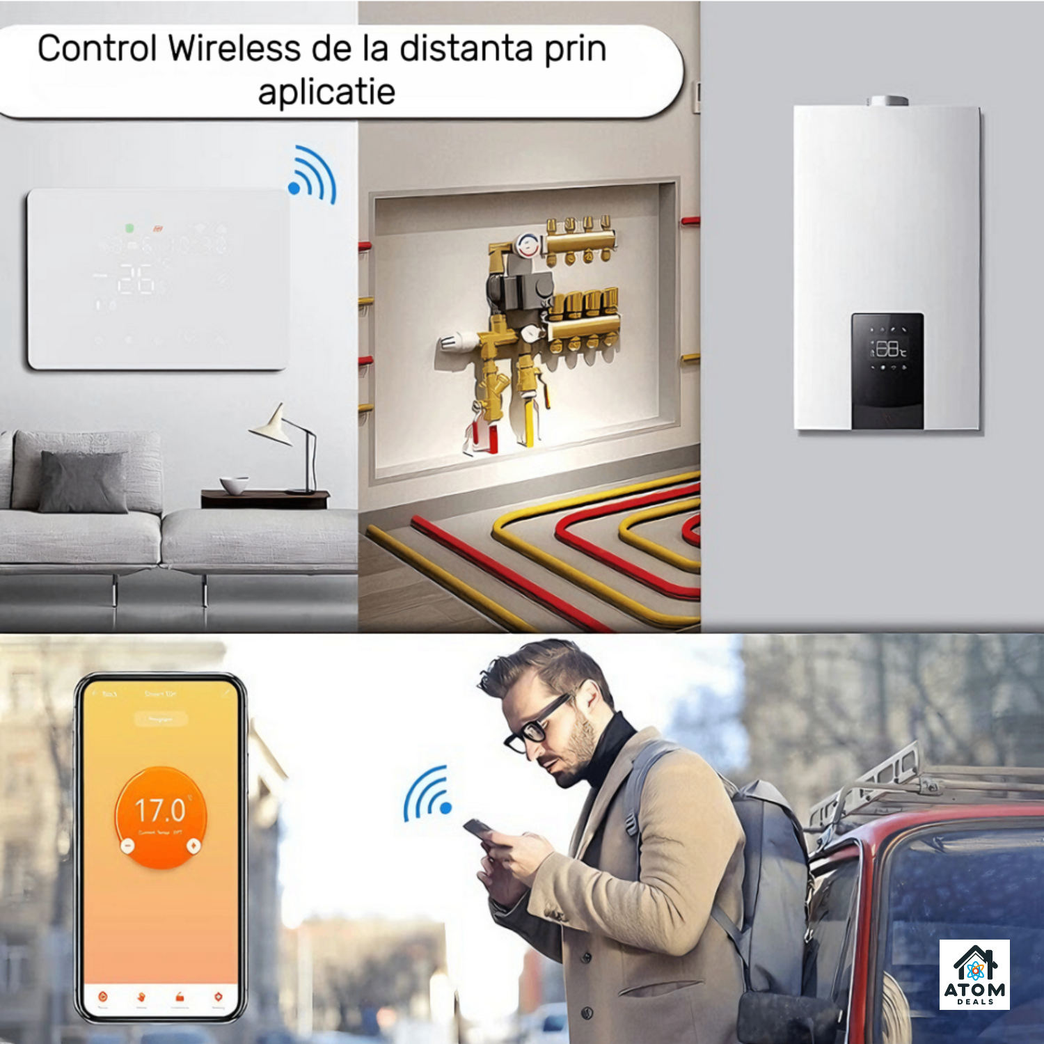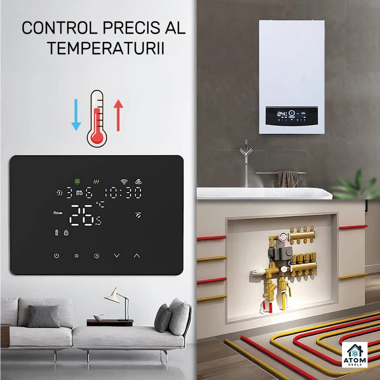 Termostat inteligent ATOM DEALS®️, WiFi HY101RF Tuya, Smart Life, touch, compatibil Alexa